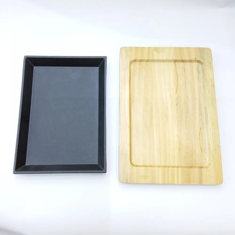 #YY2102; Cast iron pan 22x16cm + wood