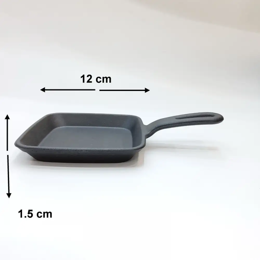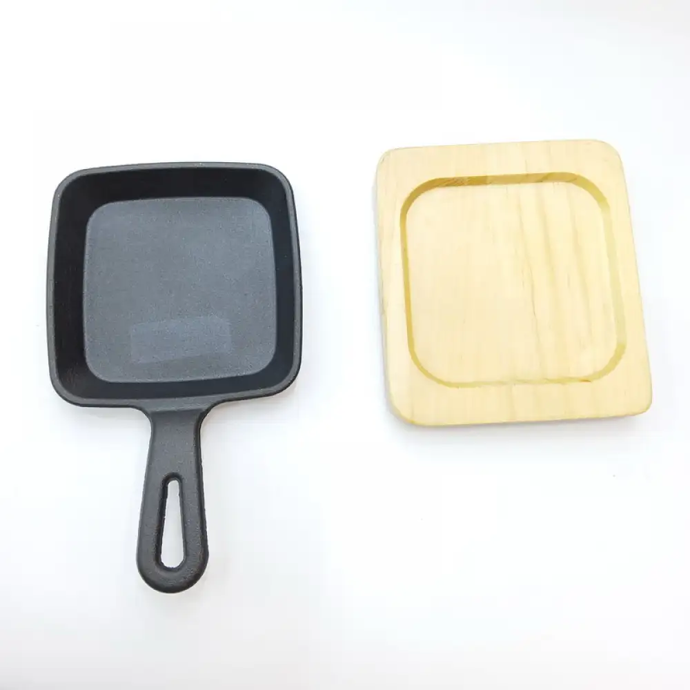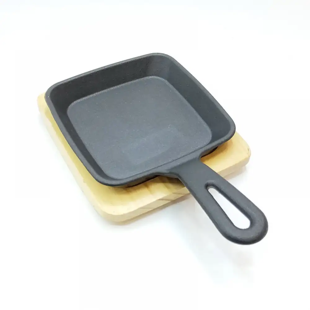 #YY084-1; Cast iron pan square 12cm + wood