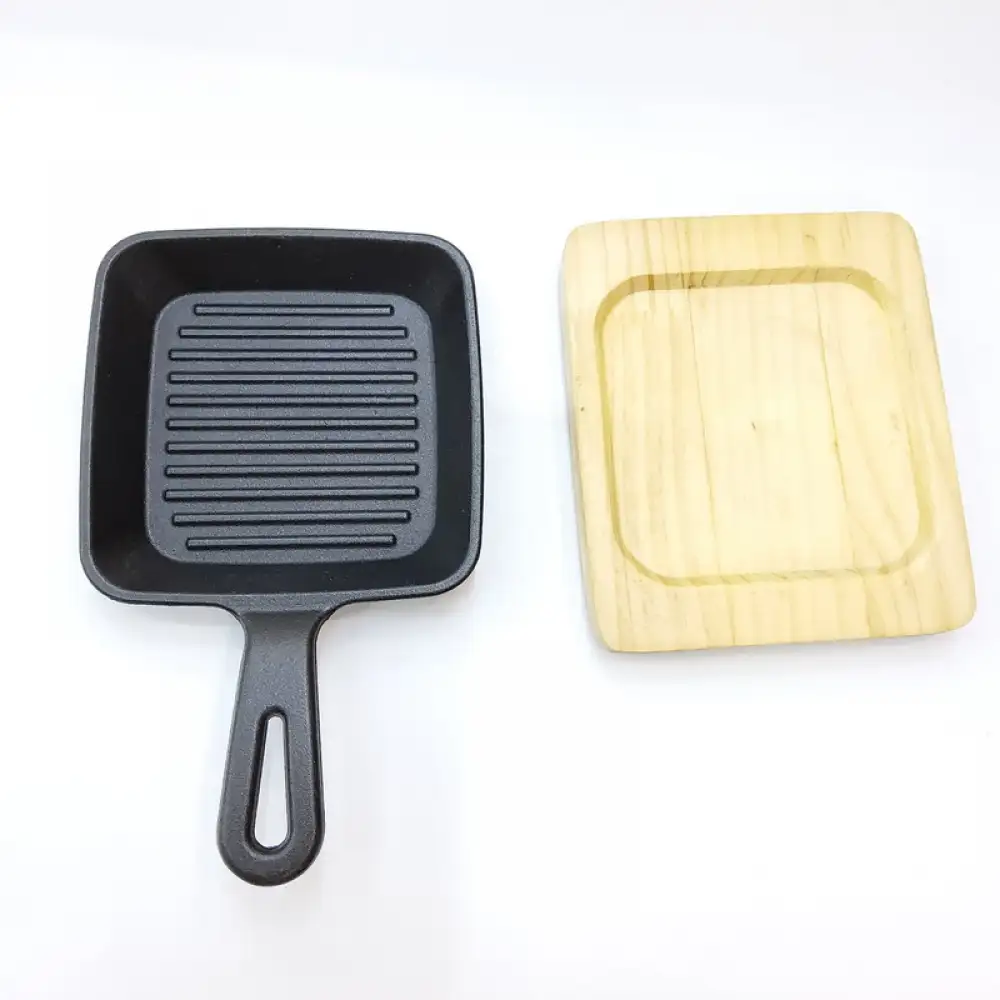 #YY083-155; Cast iron pan square15.5cm + wood