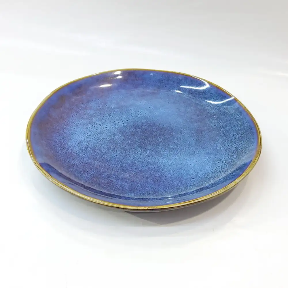 - Glazed in beautiful Blue purple combination. Irregular shape adds a touch of rustic charm.
