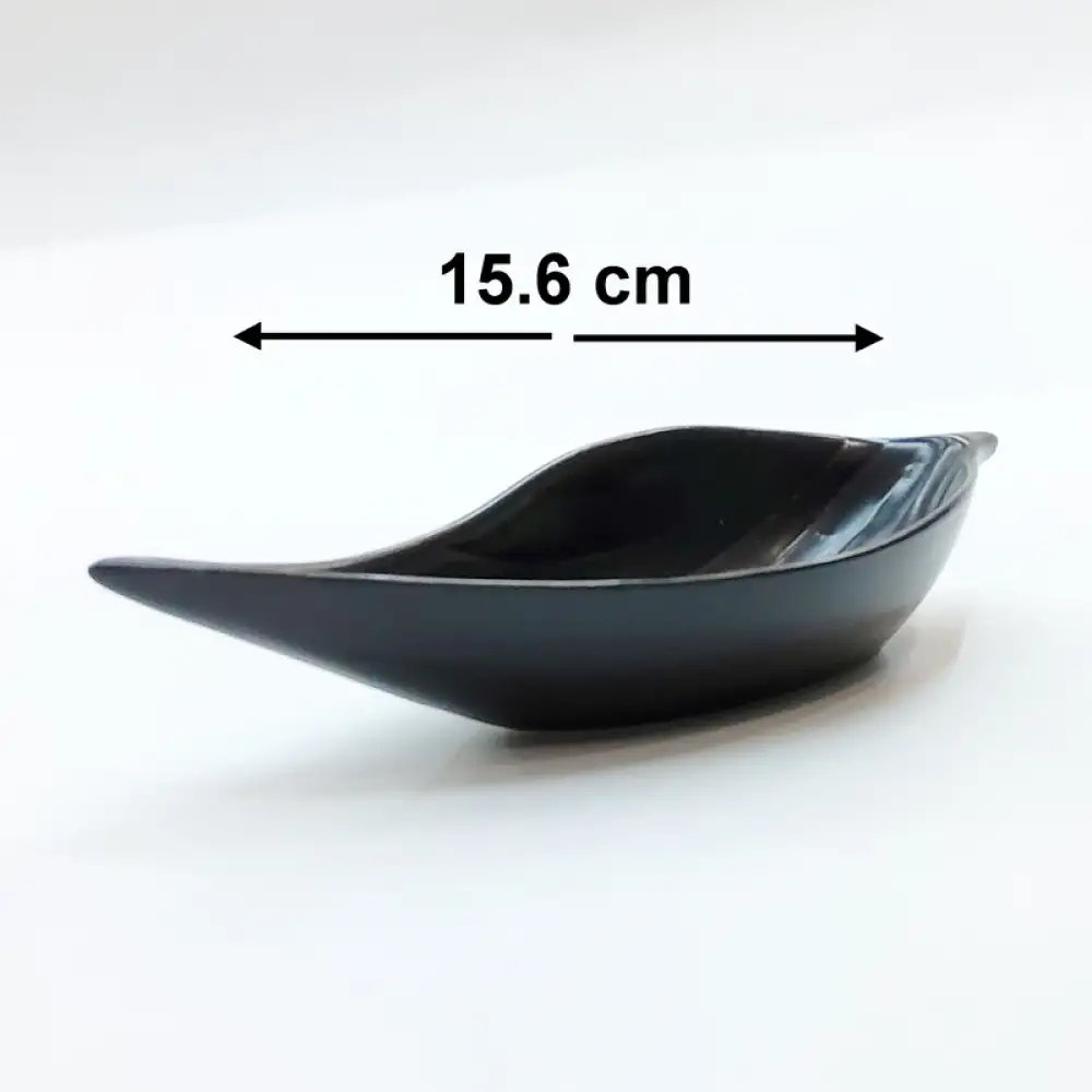 #HN7517-BK; Ceramic leaf sauce dish 15.6cm BK