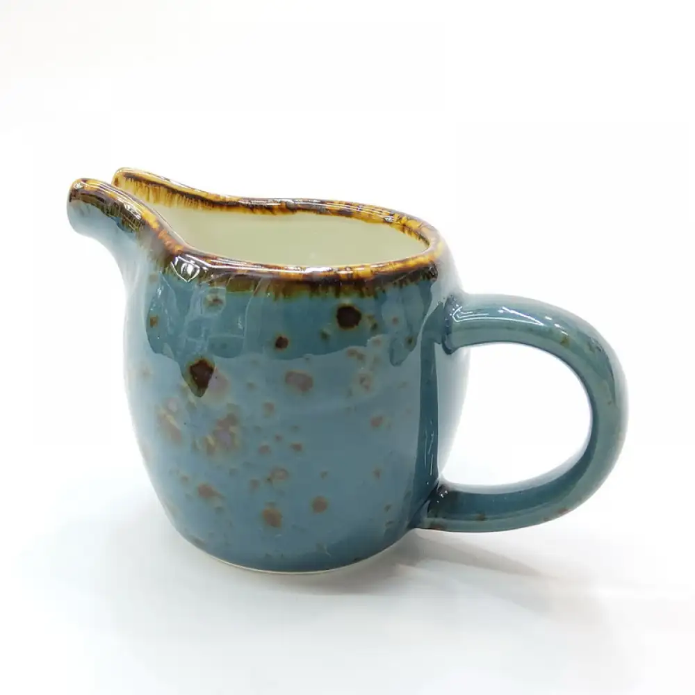 #KK1210-BL; Ceramic cream pot with handle 4 inches