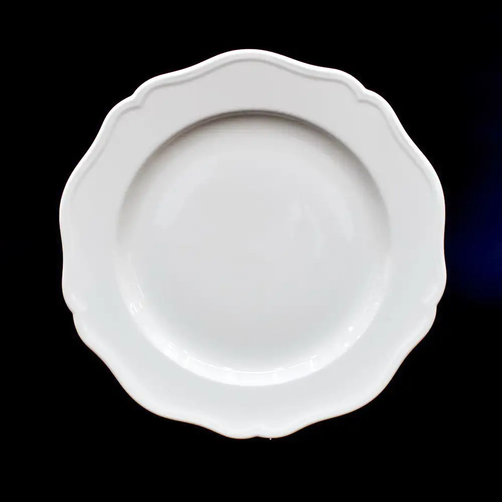 • The simple shape of a white circle with irregular patterns on the edge of the plate is beautiful and generous, which is both practical when paired with dishes.