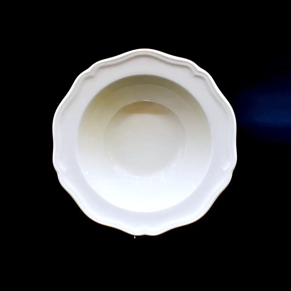 - The simple shape of a white ceramic with irregular patterns on the edge of the plate is beautiful and generous, which is both practical when paired with dishes.