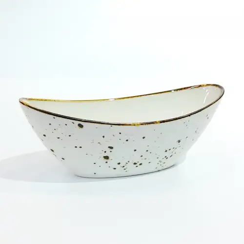 #KK7250-WT; Ceramic boat shape bowl 6.75 inches