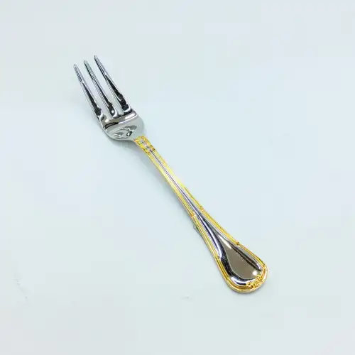 #HM9979; Stainless steel tea fork w. golden color