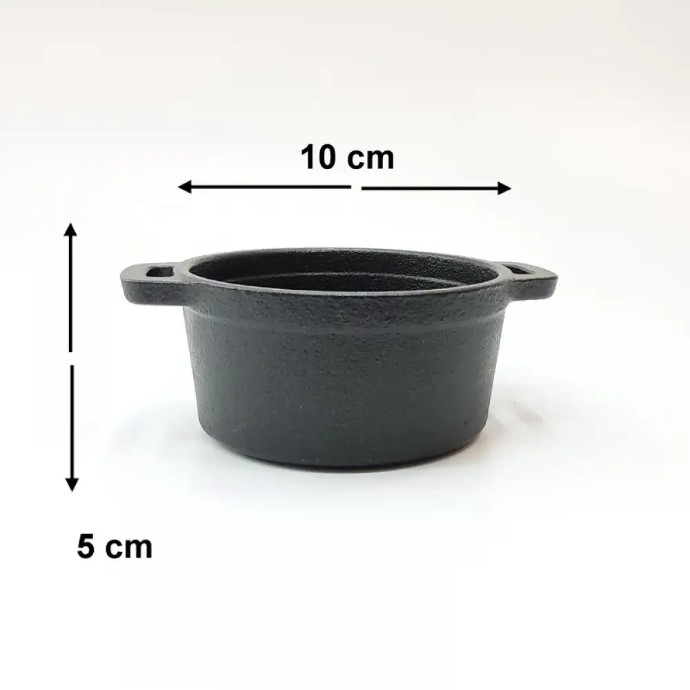 #YY10R-L; Cast iron mini casserole 10cm with wood tray